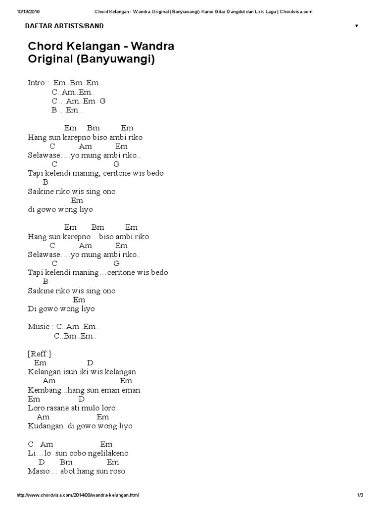 Chord Kelangan - Wandra Original (Banyuwangi) Kunci Gitar …