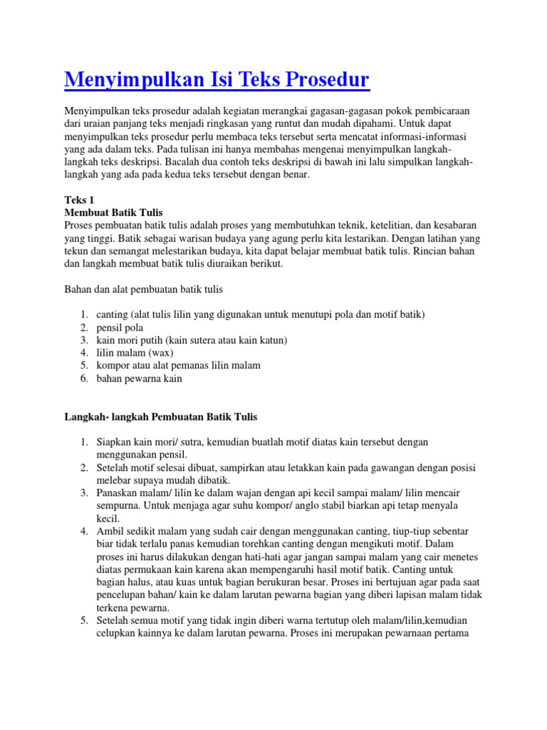 B. Menyimpulkan Isi Teks Prosedur: Membuat Batik Tulis