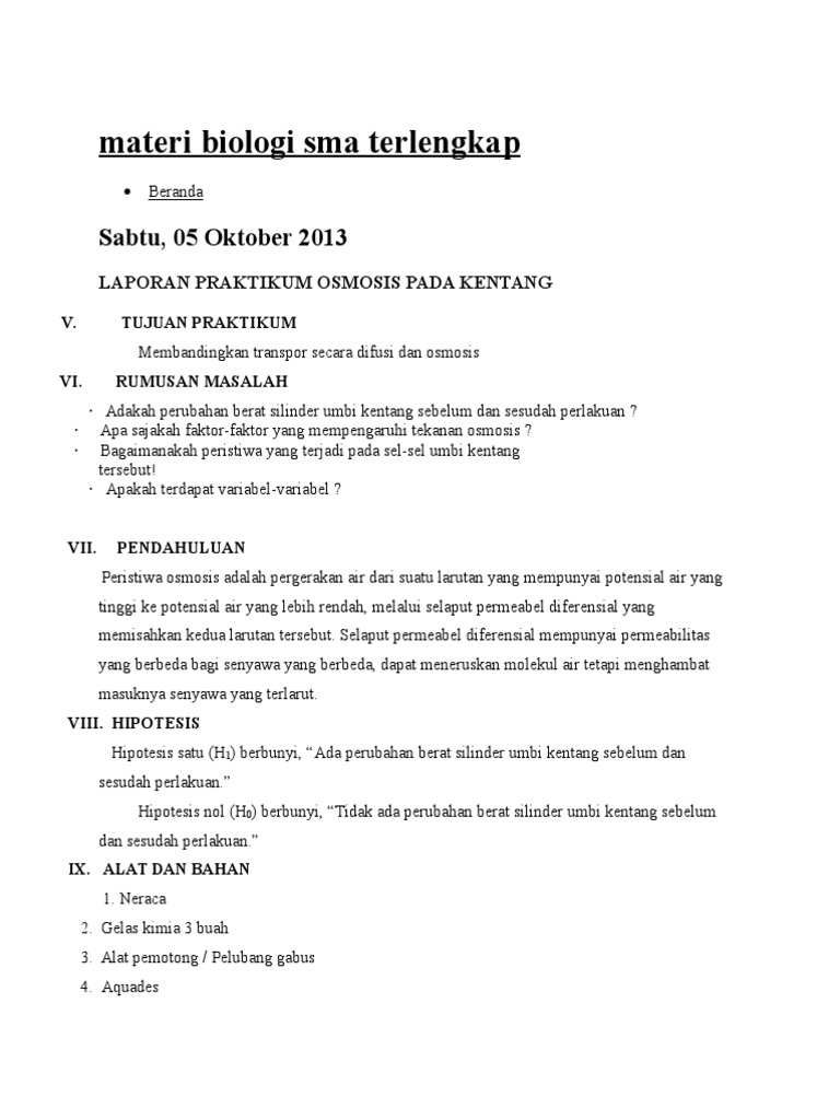 Laporan Praktikum Osmosis Pada Kentang Pdf - Seputar Laporan
