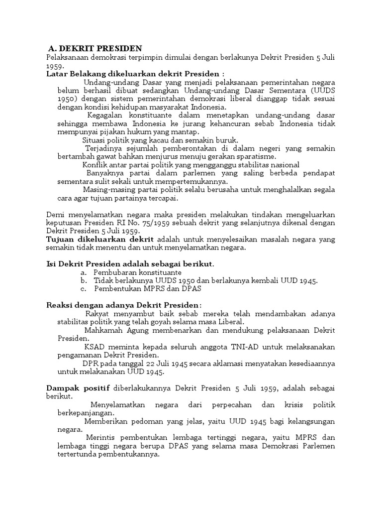 PDF) LATAR BELAKANG LAHIRNYA DEKRIT PRESIDEN 5 JULI 1959 | Vega …