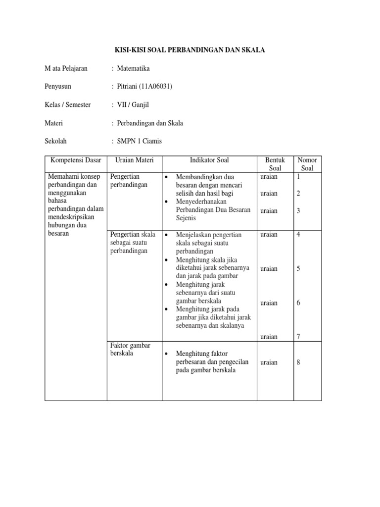 DOC) Contoh soal dan pembahasan jawaban Perbandingan dan Skala …