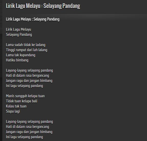 Lirik Lagu Melayu '’ Selayang Pandang '’ Lama sudah tidak ke …