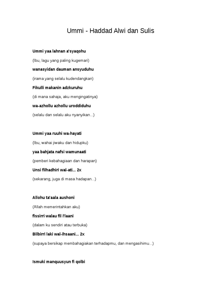 Lirik Lagu UMMI Haddad Alwi feat Sulis