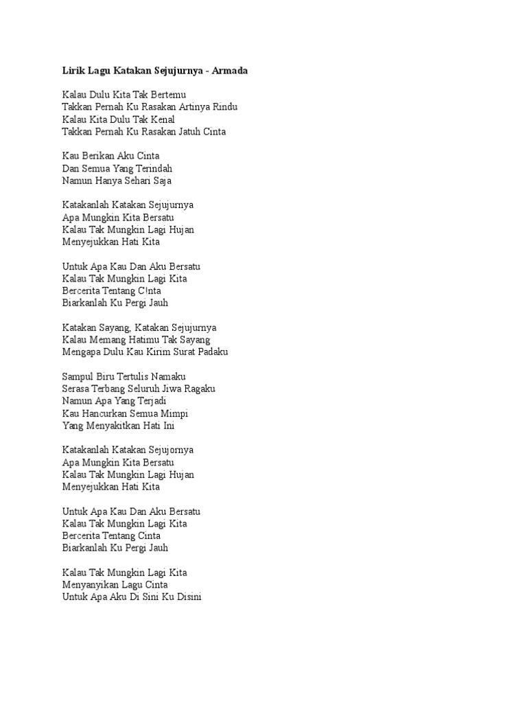 Lirik Lagu - Katakan Sejujurnya - Armada - Wattpad