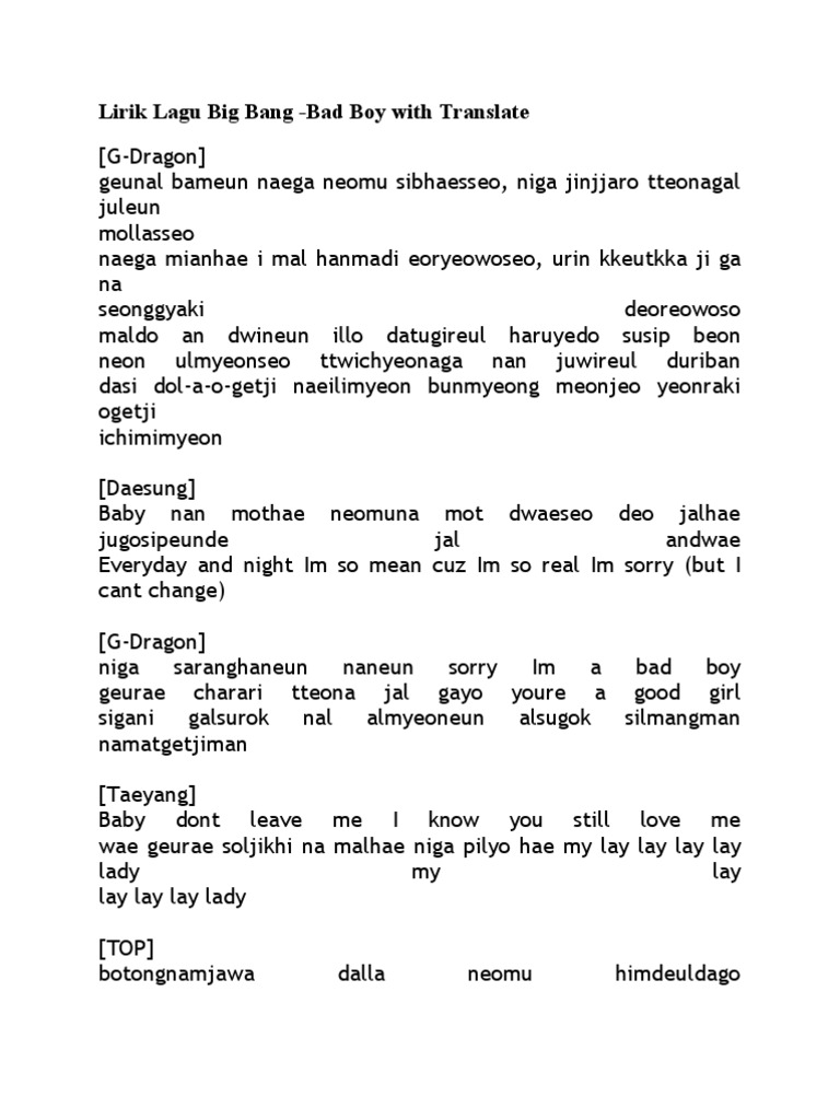 Makna Dan Arti Terjemahan Lirik Lagu If You BigBang | Bigbang, Color coded lyrics, Lyrics
