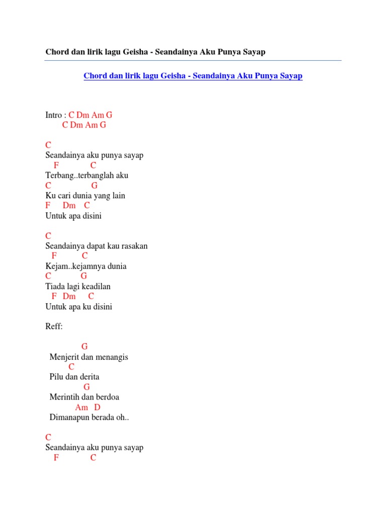 Chord dan lirik lagu geisha seandainya aku punya sayap by Chord …