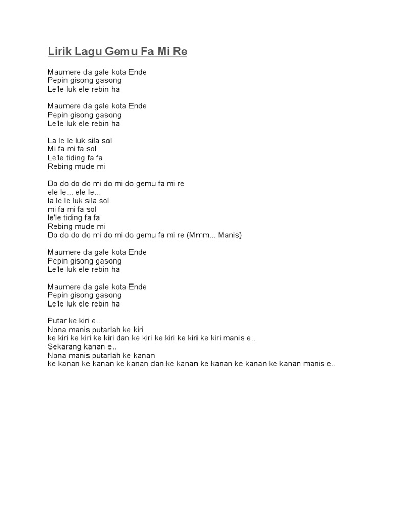 Lirik Lagu Gemu Fa Mi Re