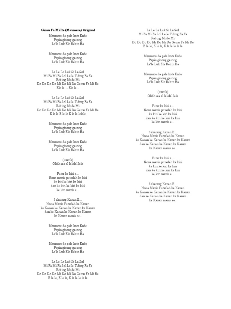 Lirik Lagu Daerah Gemu Fa Mi Re - Lagu Maumere [NTT] - Portal Kudus
