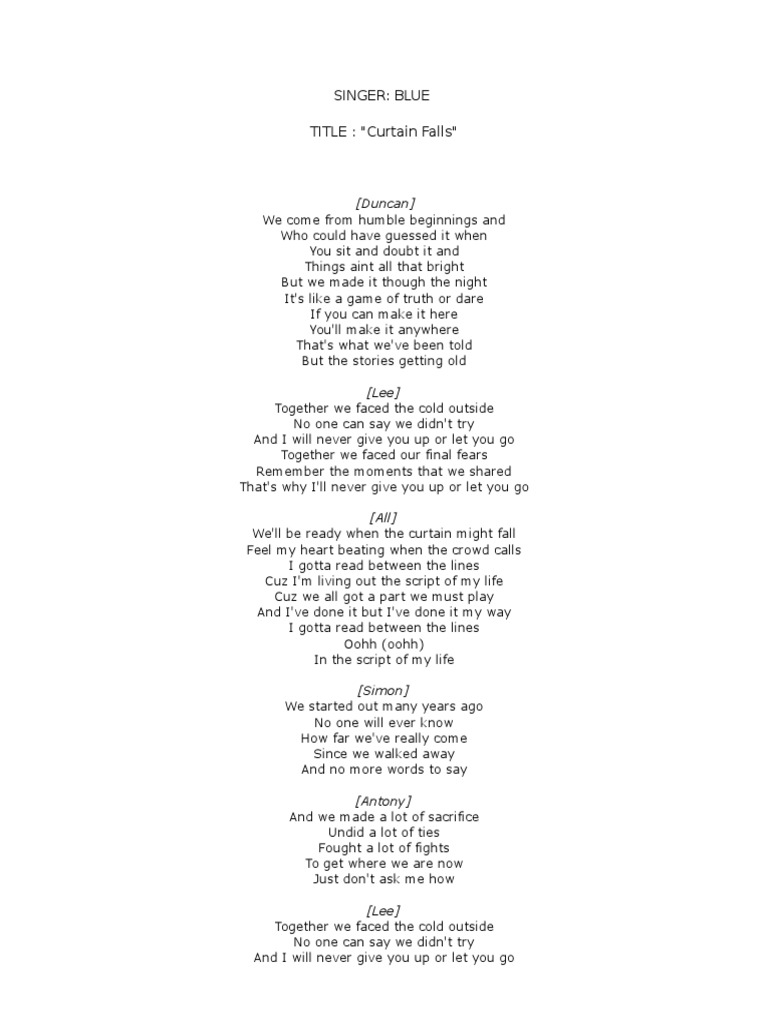 Wanita syurga bidadari dunia(◕ฺ∀◕ฺ): lirik lagu I Won’t Give Up …