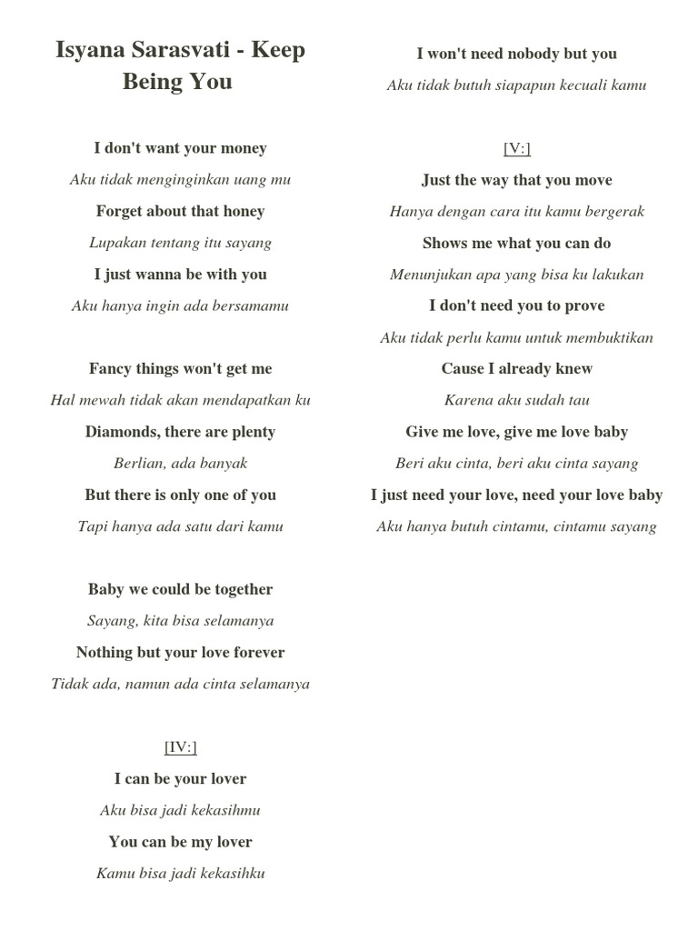 Lyrics(Lirik-lirik lagu) - Keep Being You-Isyana Sarasvati - Wattpad