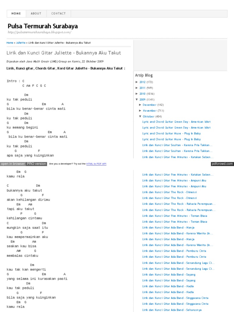 Pulsatermurahsurabaya Blogspot Com 2009 10 Lirik Dan Kunci g …