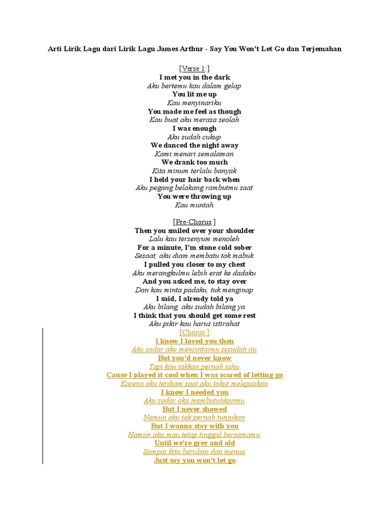 Lirik Lagu James Arthur - Say You Won’t Let Go dan Terjemahan - LIRIKINSEKUY