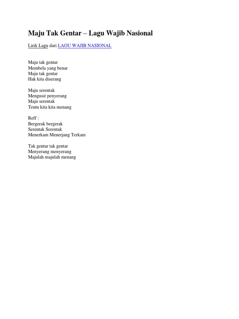 Lirik Lagu Wajib Nasional - Maju Tak Gentar - Kapanlagi [2nv8qw9q9ylk]