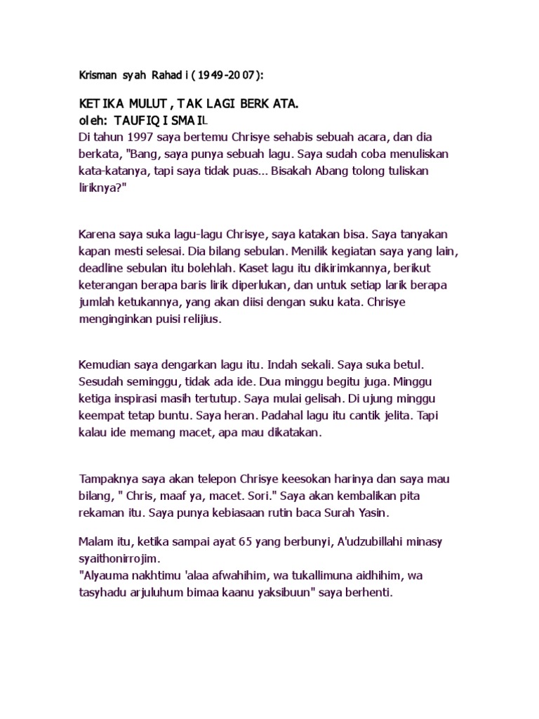 Ket Ik A Mulut , T Ak L Agi Berk Ata. Ol Eh: Tauf Iq I Sma Il