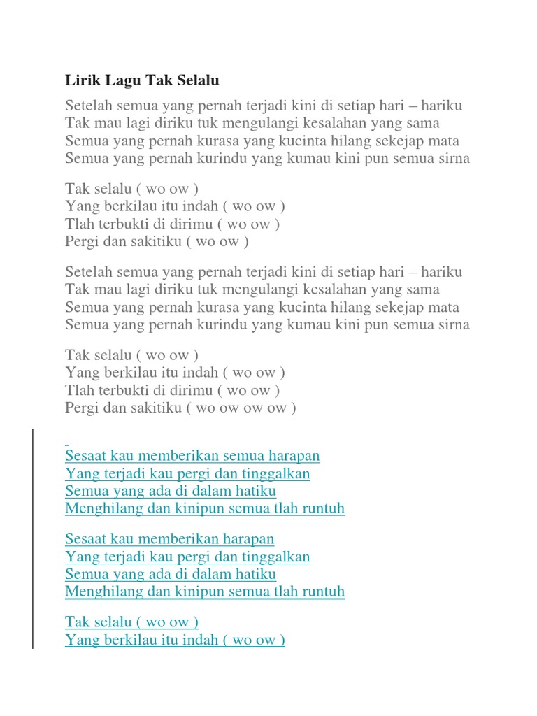 Lirik Lagu Part 3 - Tak Selalu - Souljah - Wattpad