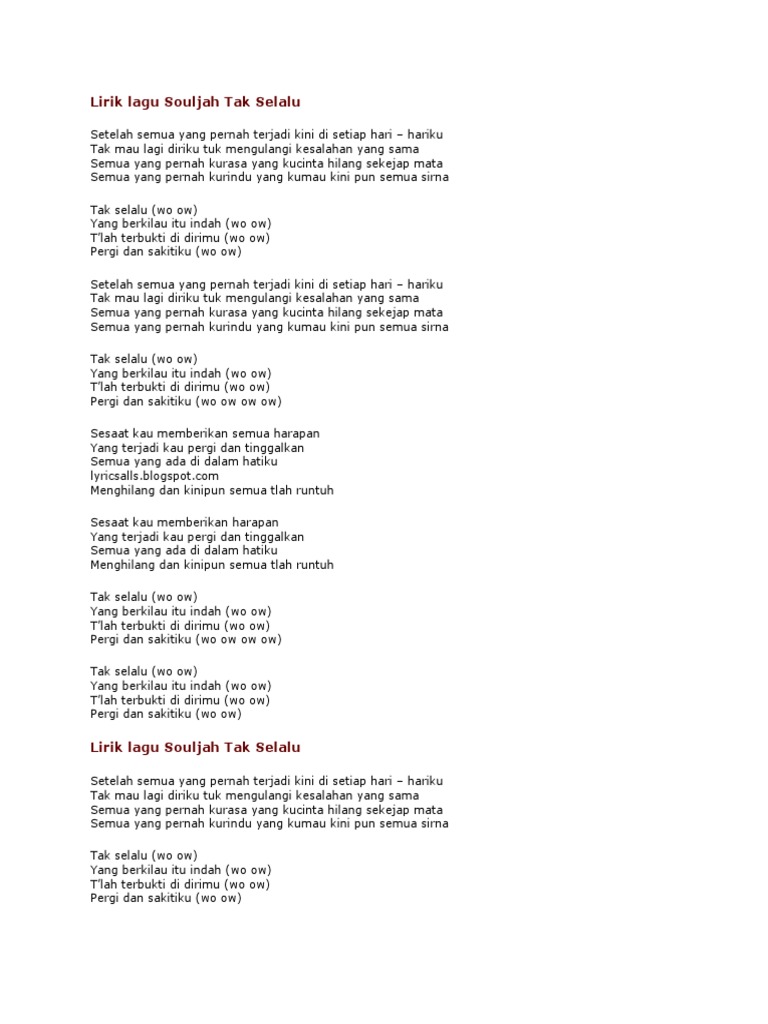 Lirik Lagu Souljah Tak Selalu - [PDF Document]