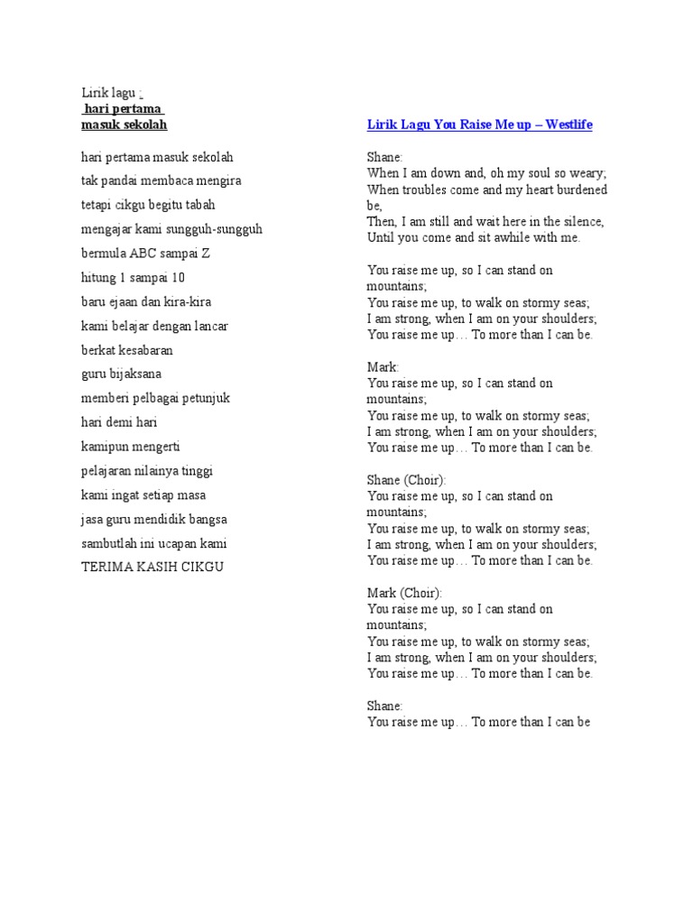 Teks Lagu You Raise Me Up - Berbagai Teks Penting