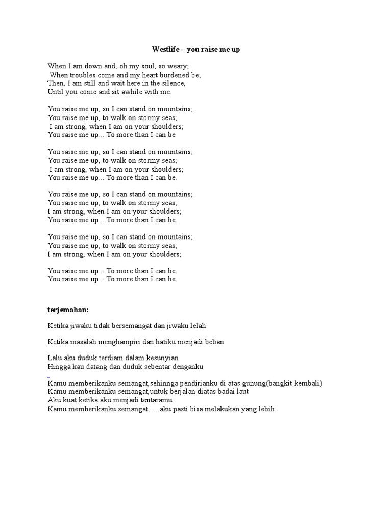 lirik lagu westlife you raise me up dan terjemahannya - terjemahan …