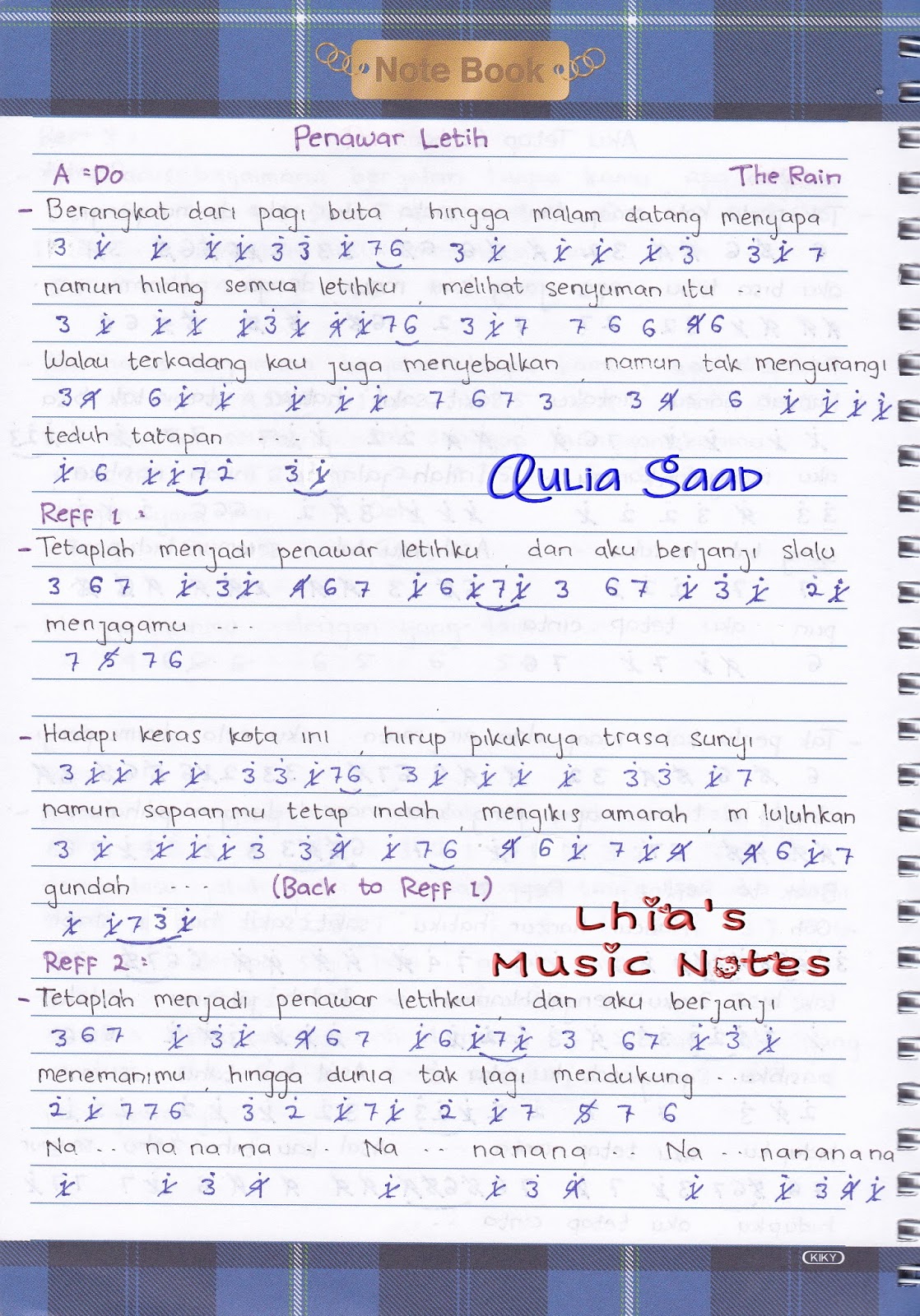 not angka lirik lagu the rain penawar letih | Lhia’s Music Notes