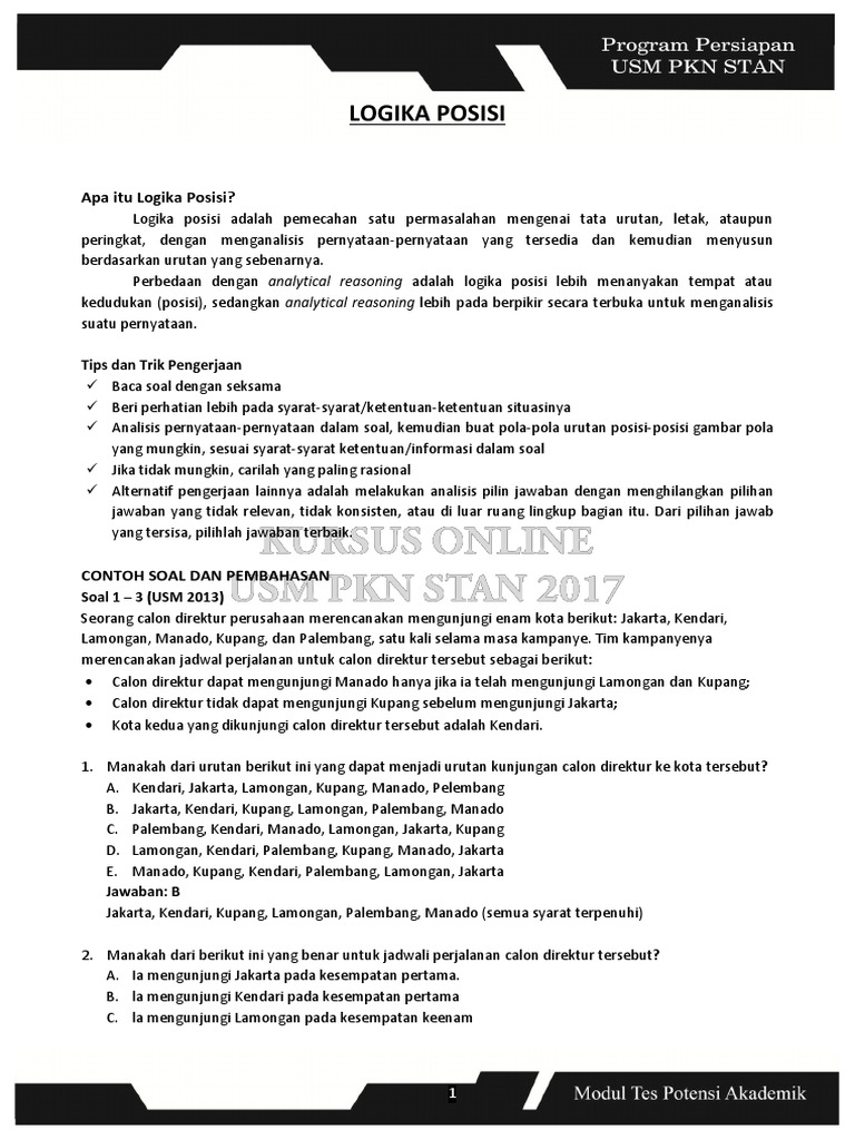 LOGIKA POSISI | PEMECAHAN MASALAH DENGAN KONDISI BERSYARAT - Materi TPA USM STAN TKPA SBMPTN CPNS - Pustaka Riyadi
