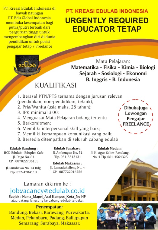 Lowongan Kerja PT. Kreasi Edulab Indonesia Juli 2016 | LOWKER NASIONAL