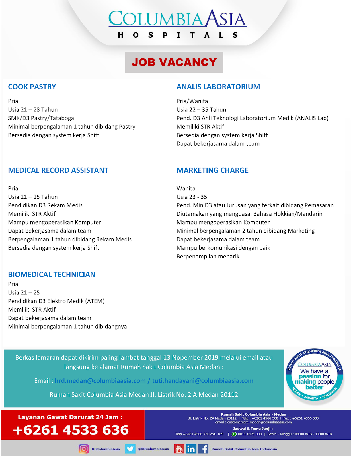 Info Loker Medan Terbaru di RS Columbia Asia Medan - MedanLoker.Com - Lowongan Kerja Medan