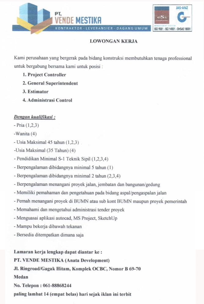 Info Loker Medan Terbaru di PT Vende Mestika Medan - MedanLoker.Com - Lowongan Kerja Medan
