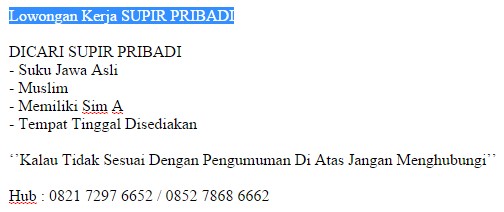 kumpulan ilmu dan pengetahuan penting: Lowongan Kerja Supir Pribadi
