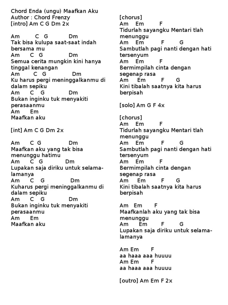 chord gitar enda(ungu)“maafkan aku” Chords - Chordify