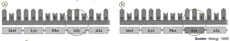 Berikut ini adalah gambar mutasi gen. Jenis mutasi yang terjadi …