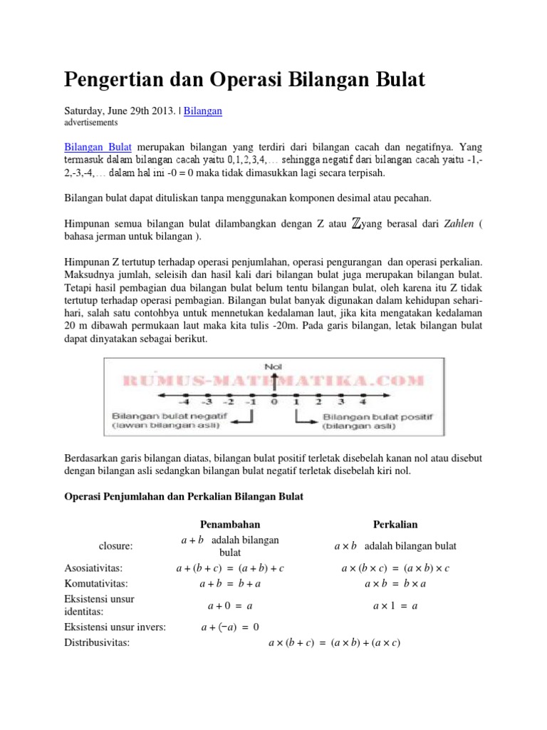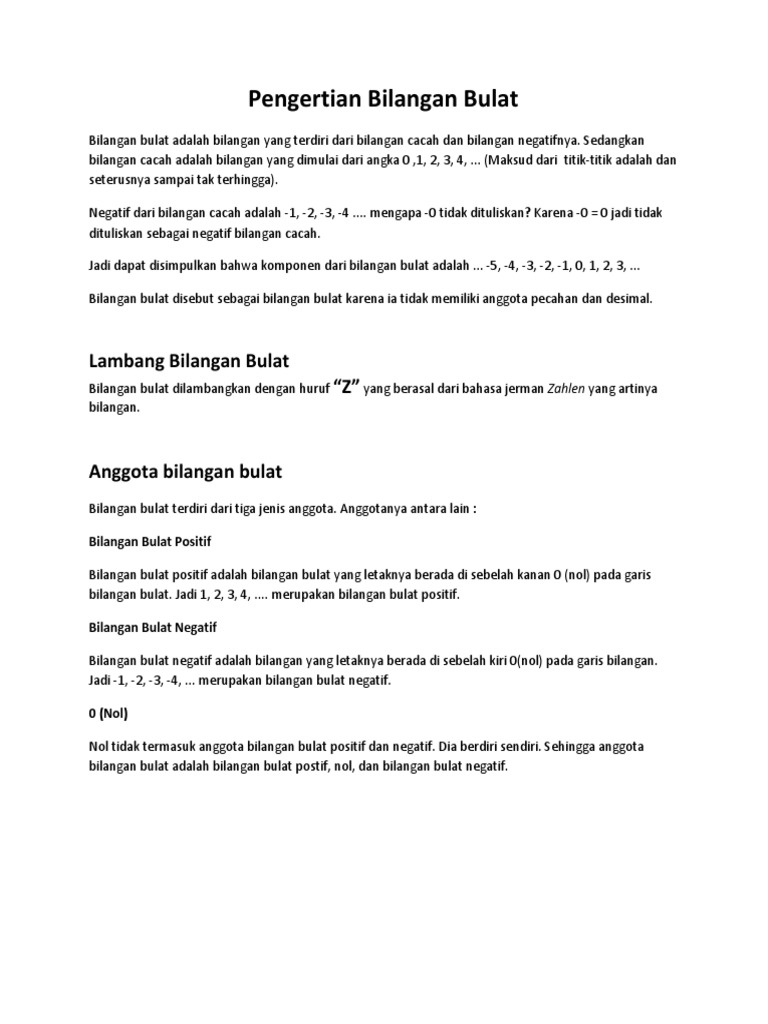 Web view RANGKUMAN MATEMATIKA Kelas 7. Pengertian Bilangan Bulat artinya tidak terpecah atau tidak terpotong. - [DOCX Document]