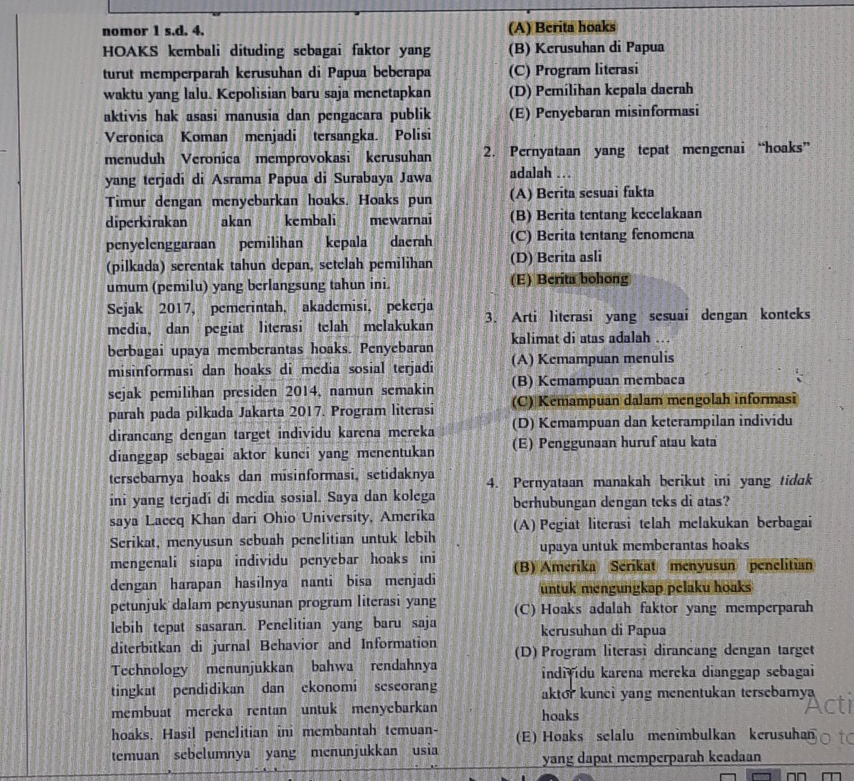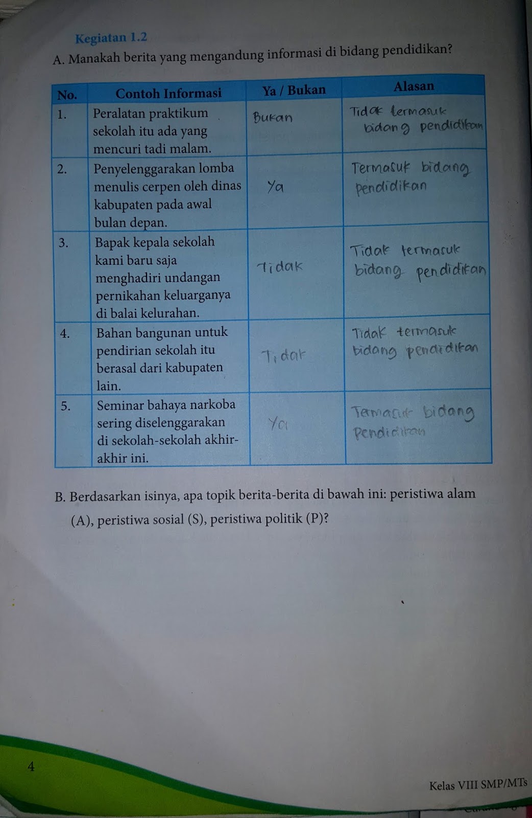 Jawaban Kegiatan 1.2 Bahasa Indonesia Kelas 8 Hal 4 Manakah Berita yang Mengandung | Pentium Sintesi