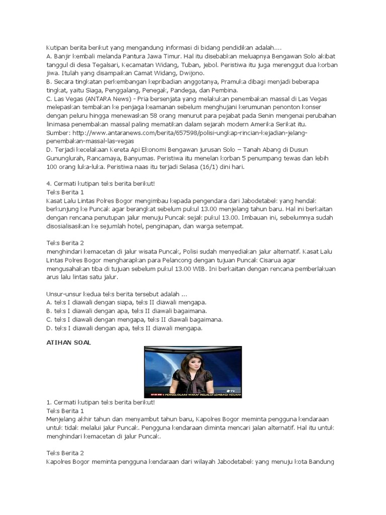 A. Manakah berita yang mengandung informasi di bidang pendidikan?B. Berdasarkan isinya, apa topik - Brainly.co.id