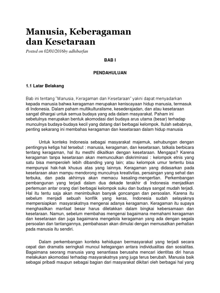 Manusia, Keberagaman dan Kesetaraan: Posted on 02/01/2016by adhibarfan
