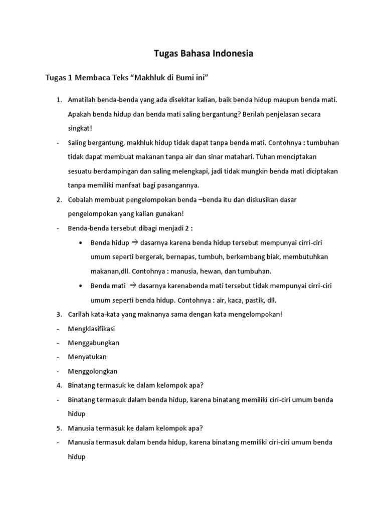 DOC) Tugas 1 Membaca Teks " Makhluk di Bumi Ini " | Saeftie Ayuningtyas - Academia.edu