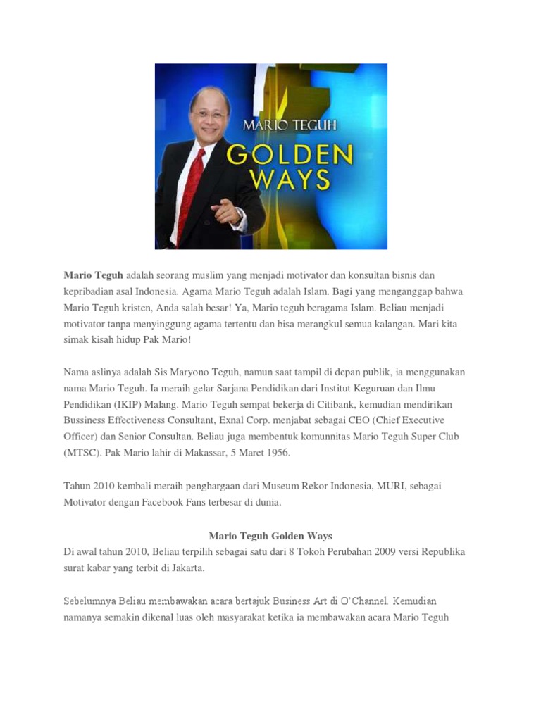 Mario Tegoh Golden Ways | Mario antonio | Pages Directory