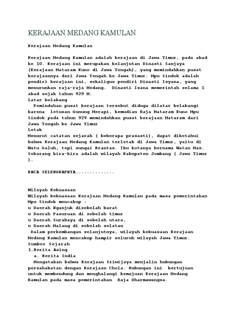 Sejarah - Kerajaan Medang Kamulan - Wattpad