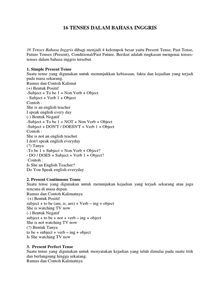DOC) 16 Tenses dalam Bahasa Inggris | arni anti - Academia.edu