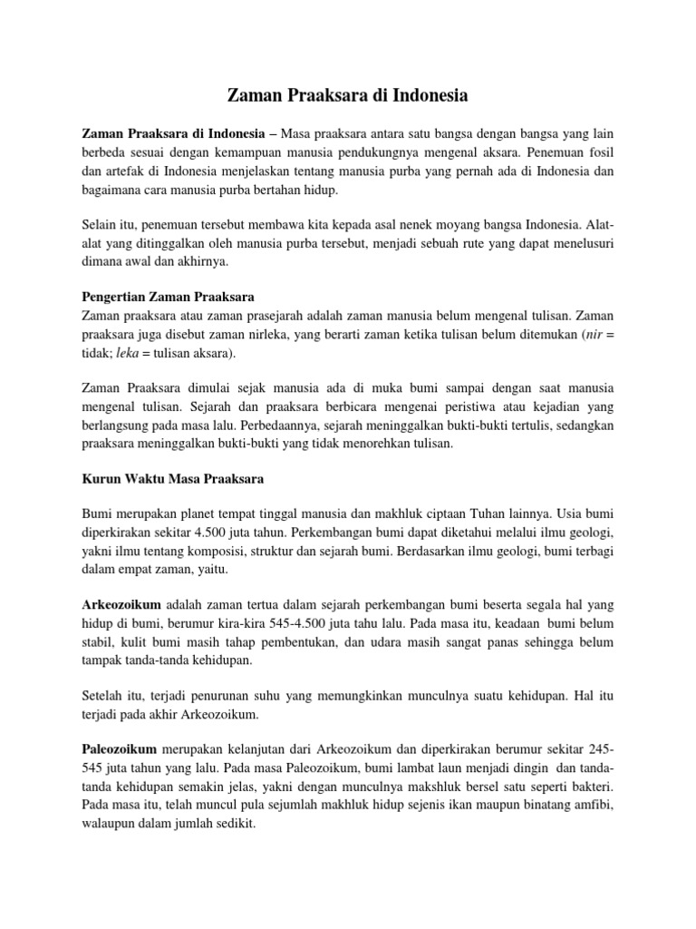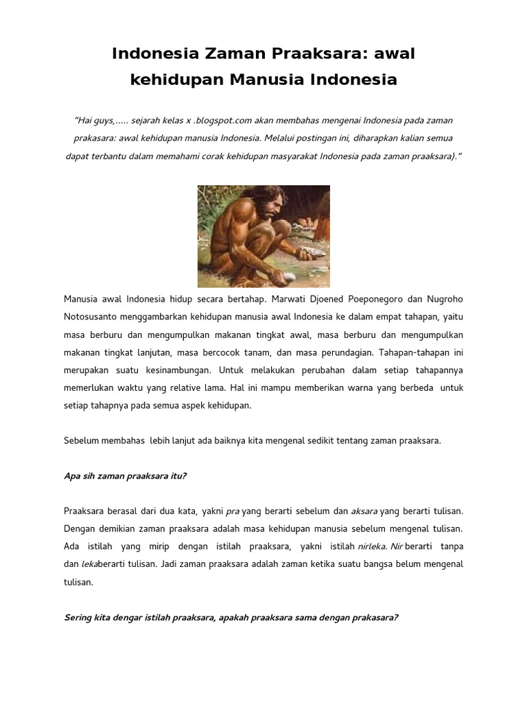 Kehidupan Manusia pada Masa Praaksara di Indonesia ⋆ DOC | PDF ⋆ Download Contoh Makalah Lengkap