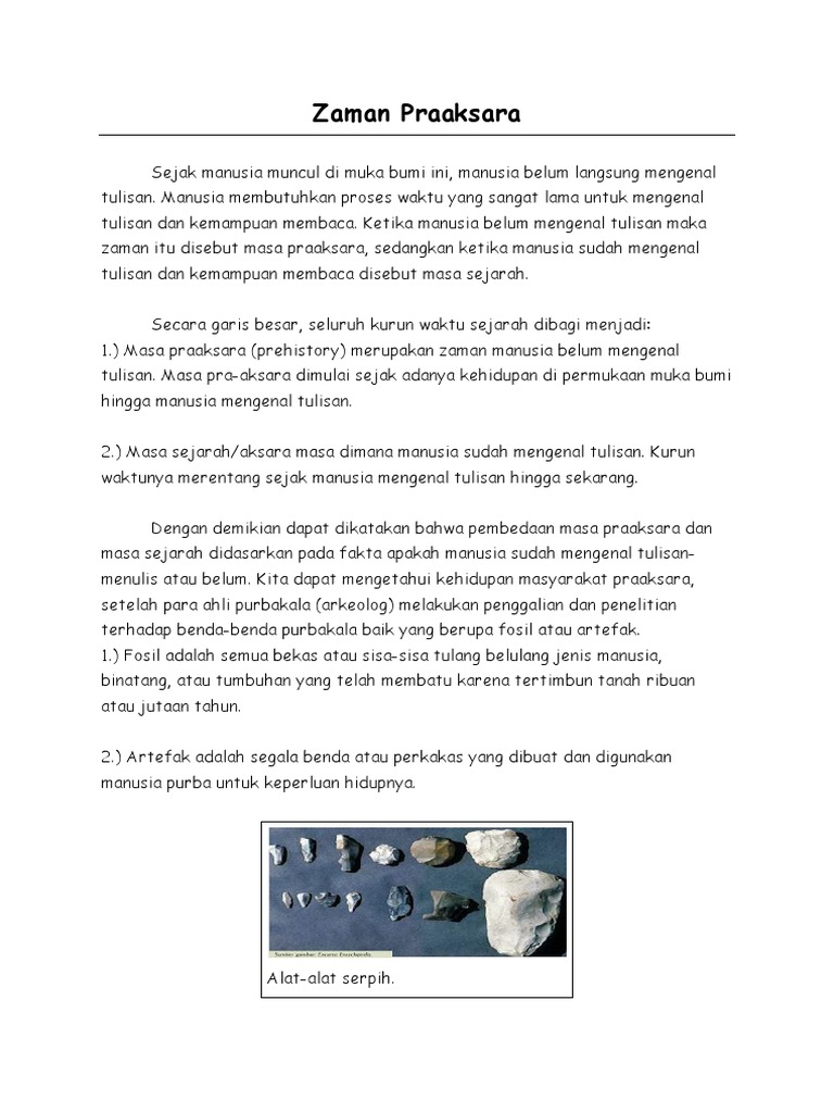 Ilmu Pengetahuan Sosial SMP ++: Pengertian dan Kurun Waktu masa Praaksara