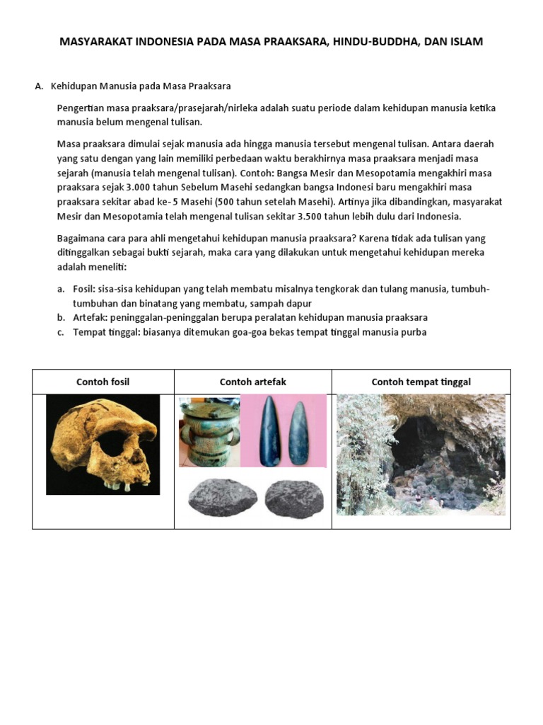 Contoh Soal Kehidupan Masyarakat Indonesia Masa Praaksara