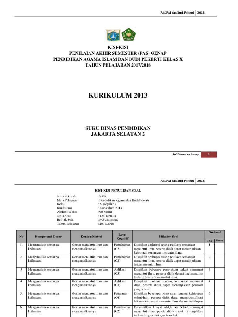 (1) Kisi2 Pas Genap Pai Kls x (2018)