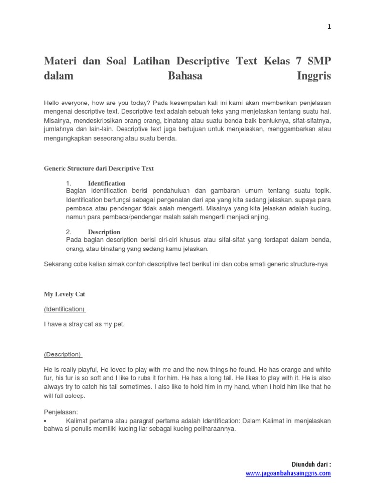 18+ Contoh Soal Descriptive Text Smp Kelas 7 - Kumpulan Contoh Soal
