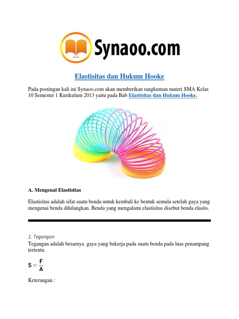 Rangkuman Materi Elastisitas Dan Hukum Hooke PDF By Synaoo.com