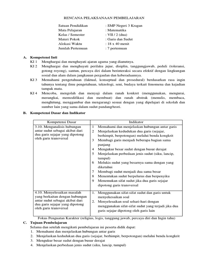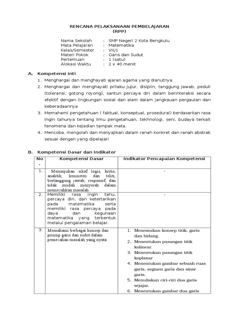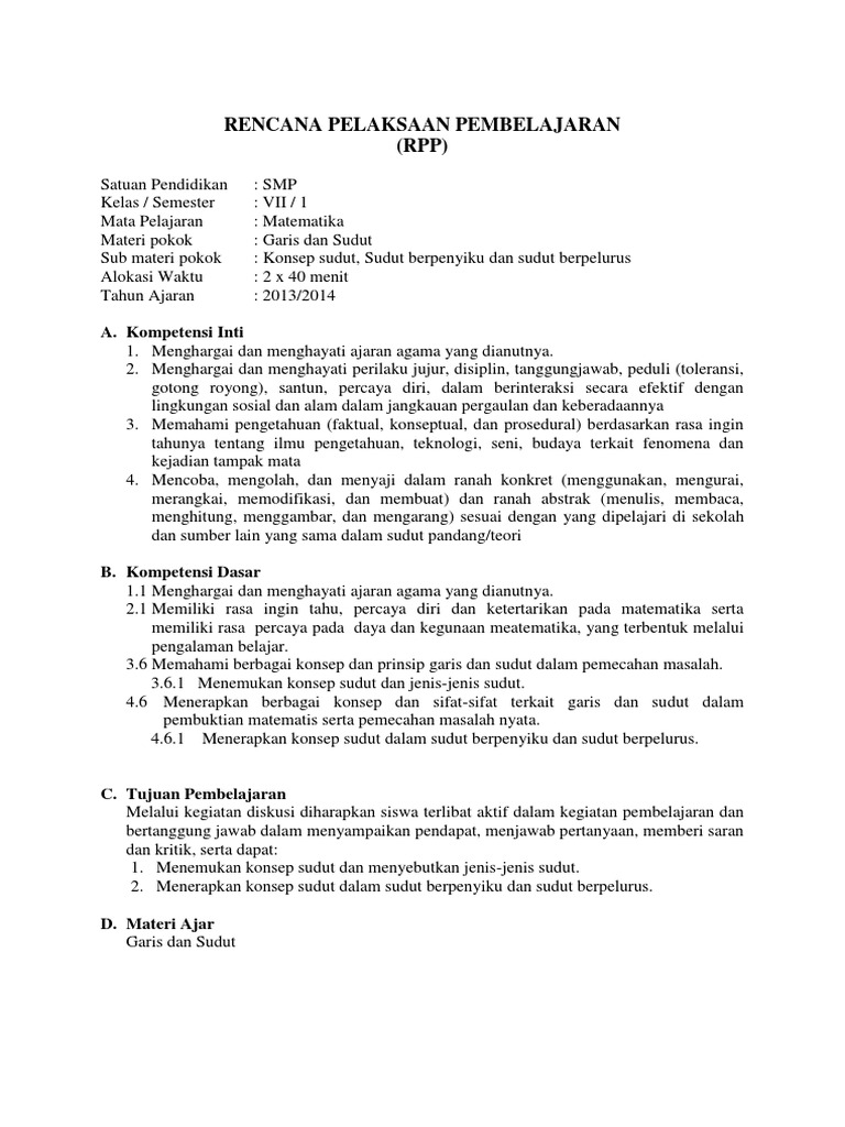 Rpp Bab Garis Dan Sudut Kelas 7 Kurtilas – IlmuSosial.id