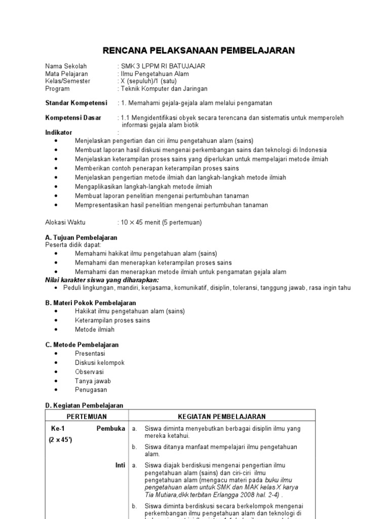 Contoh rpp IPA Kelas X | Made Suarda - Academia.edu