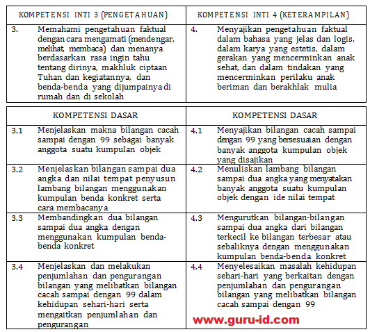 Ki Dan Kd Matematika Kelas 1 Sd/Mi Kurikulum 2013 Semester 1-2 …