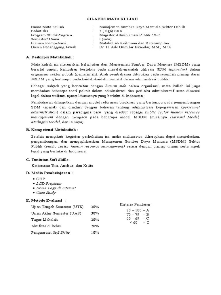 Silabus Mata Kuliah MSDM Sektor Publik by AGI OK