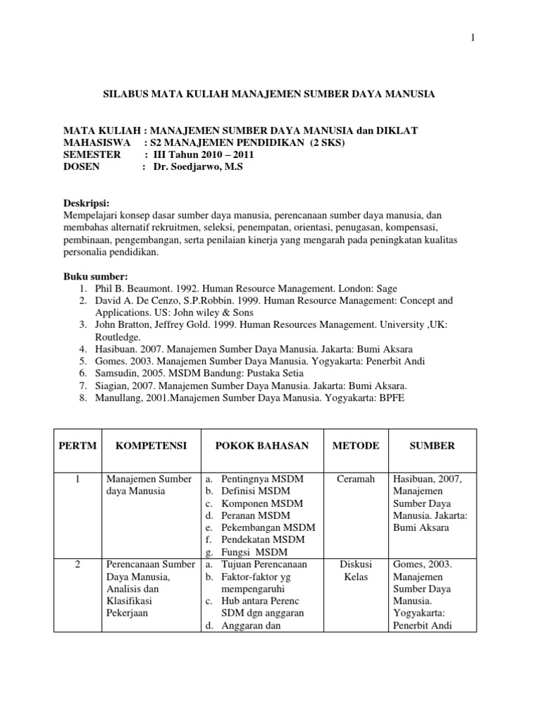 SATUAN ACARA PERKULIAHAN MANAJEMEN SUMBER DAYA MANUSIA I - ppt …