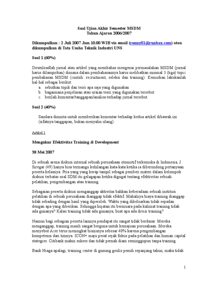 DOC) Soal UAS Manajemen Sumber Daya Manusia dan Pembahasan | Laili …